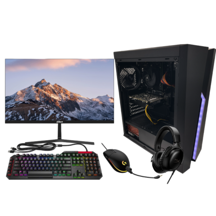 Vil du have en helt nem start, kan du også vælge en komplet PC-pakke med skærm, tastatur, mus, musemåtte og headset, så du har alt samlet i én løsning.
