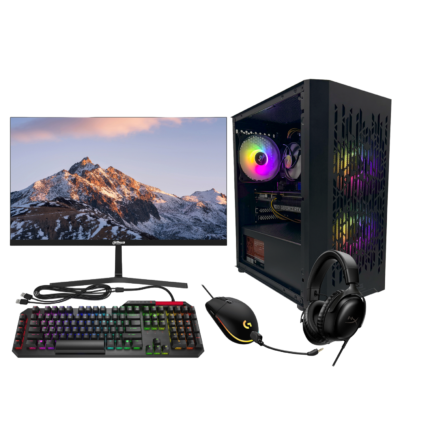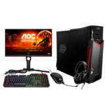 Som en del af pakken medfølger der skærm og gaming-udstyr, så du har alt til en komplet station fra dag ét: AOC Gaming 25G3ZM/BK 25″ Full HD skærm med 240 Hz og AMD FreeSync Premium, samt gaming-mus, mekanisk tastatur og headset, så du kan spille og kommunikere med det samme.