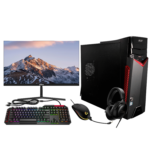 Som en del af pakken medfølger der skærm og gaming-udstyr, så du har alt det nødvendige til at komme i gang: en 23,8″ Full HD skærm med op til 100 Hz, gaming-mus, mekanisk tastatur og headset, så du kan spille og kommunikere med det samme.