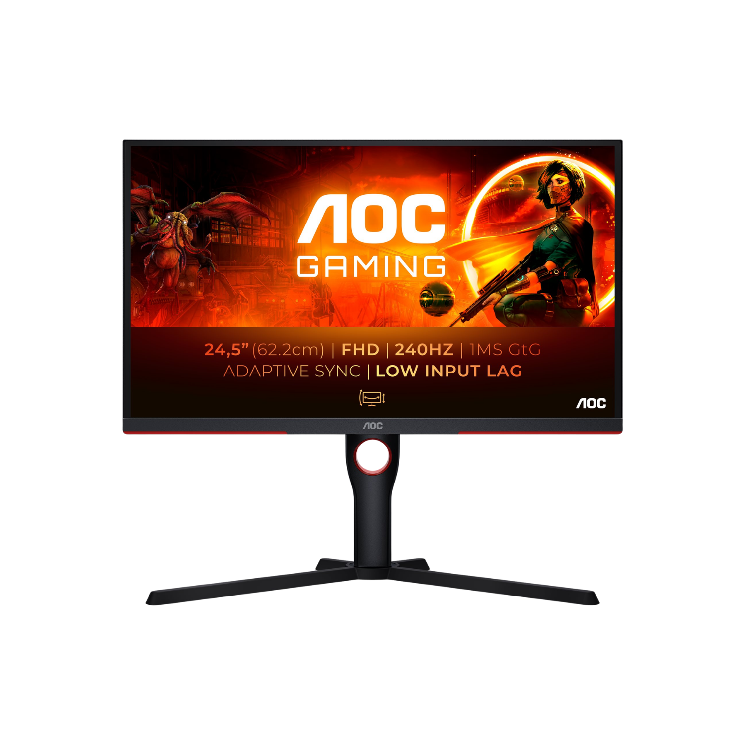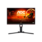 Som skærm medfølger AOC Gaming 25G3ZM/BK, en 25″ Full HD gaming-skærm med 240 Hz, VA-panel og AMD FreeSync Premium, som er ideel til e-sport hvor lav input lag og høj opdateringshastighed betyder noget. Skærmen har 0,5 ms MPRT / 1 ms GtG og gode ergonomiske justeringsmuligheder.