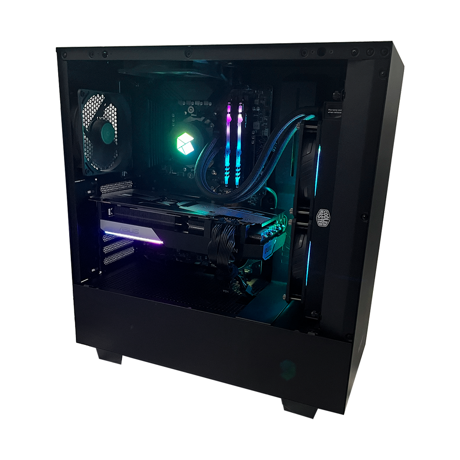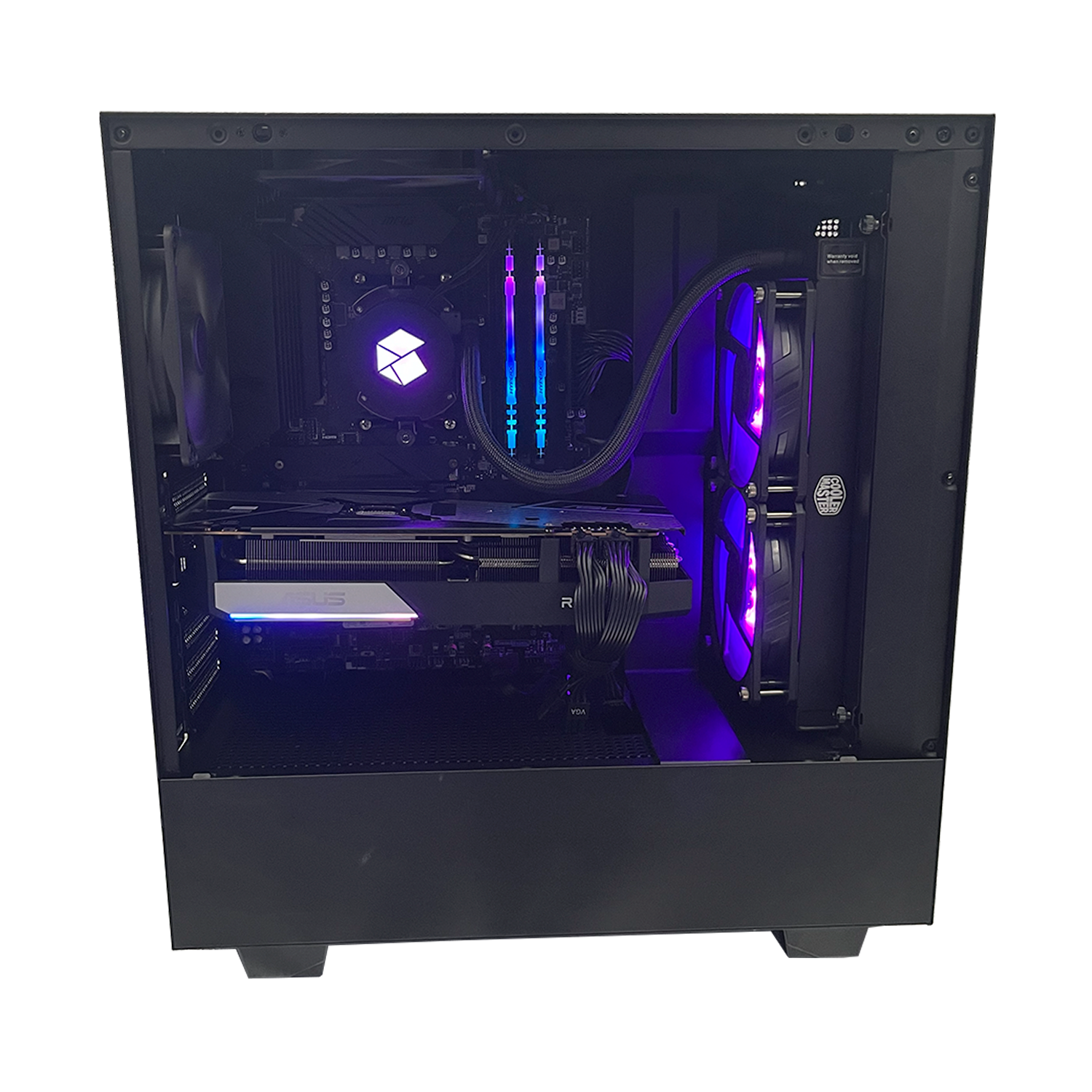Gamer Deal med brugte dele: Ryzen 9 3900X og RX 6700 XT til høj FPS i 1080p. 240 mm vandkøling for lav støj og stabile temps. Windows installeret – Plug & Play.