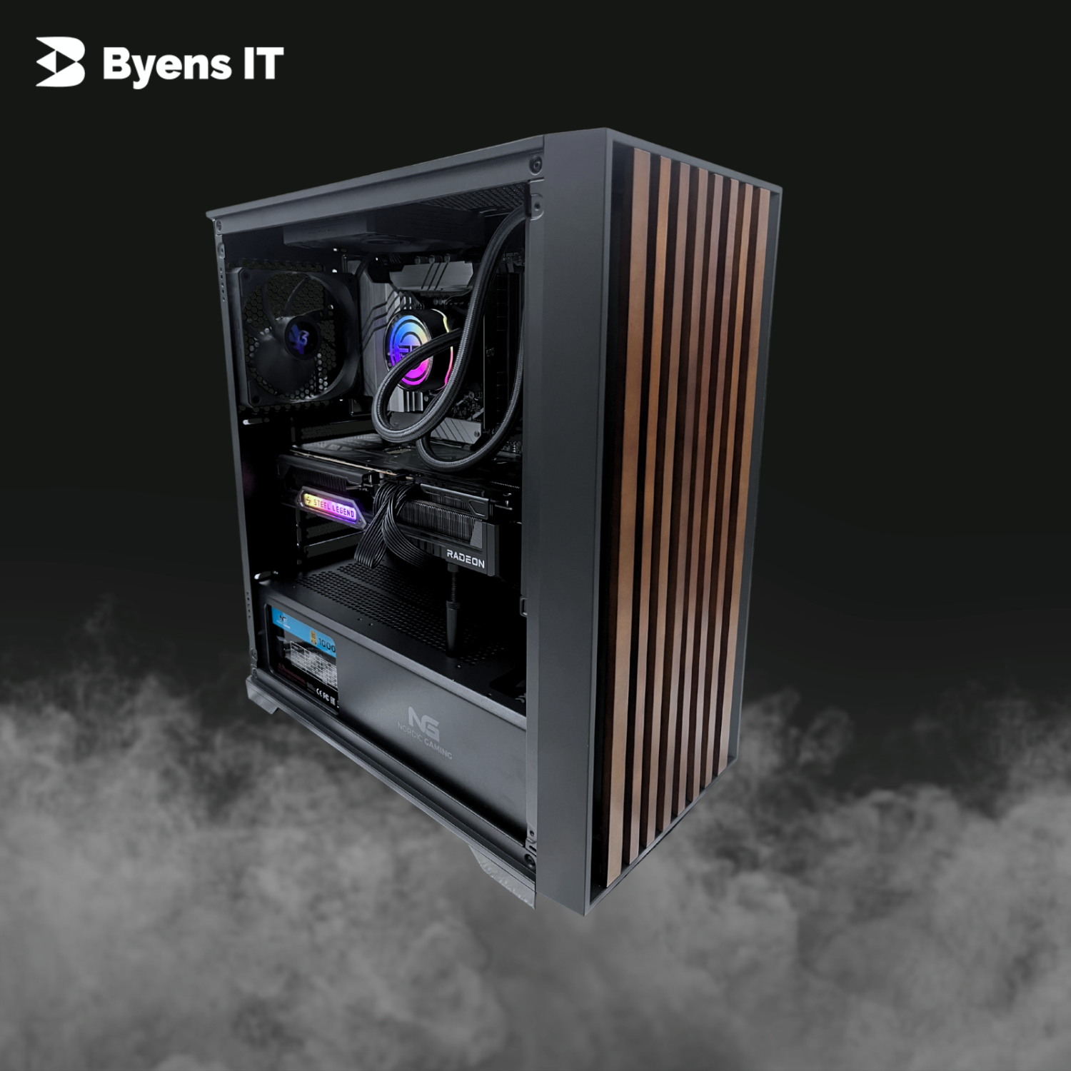 Lagerpladsen er en 1 TB Kioxia SATA SSD, der giver hurtig opstart, korte loadtider og god plads til dine spil. Strømmen leveres af en Nordic Gaming 1000W 80+ Gold strømforsyning, så der er solid kapacitet til systemet, og hele setup’et er bygget i et Nordic Gaming Ratatosk Tower ATX Sort Wood kabinet, som giver et stilrent look og plads til komponenterne.