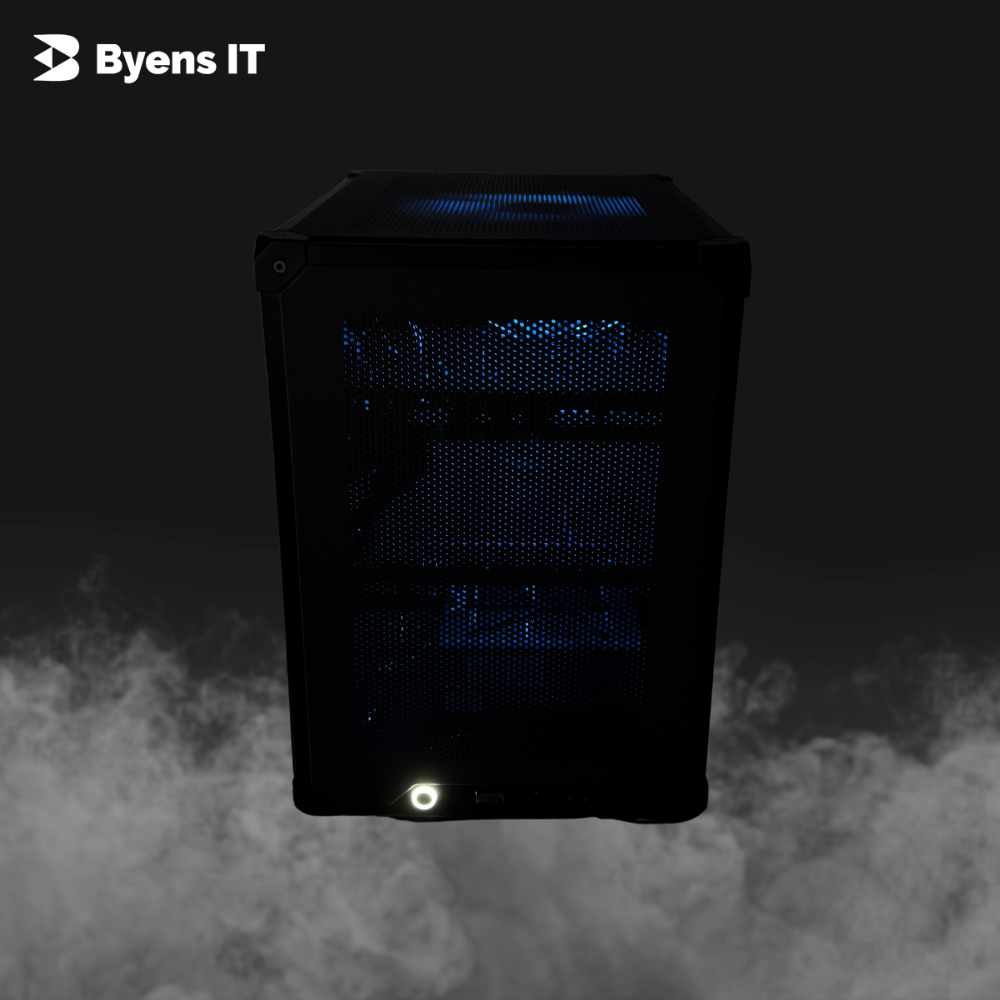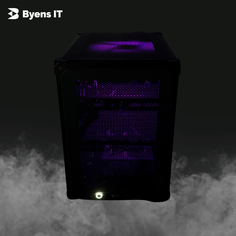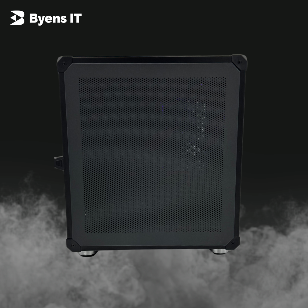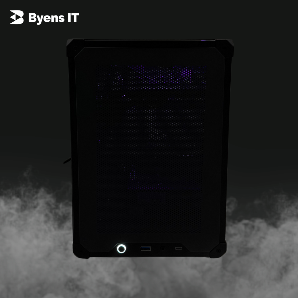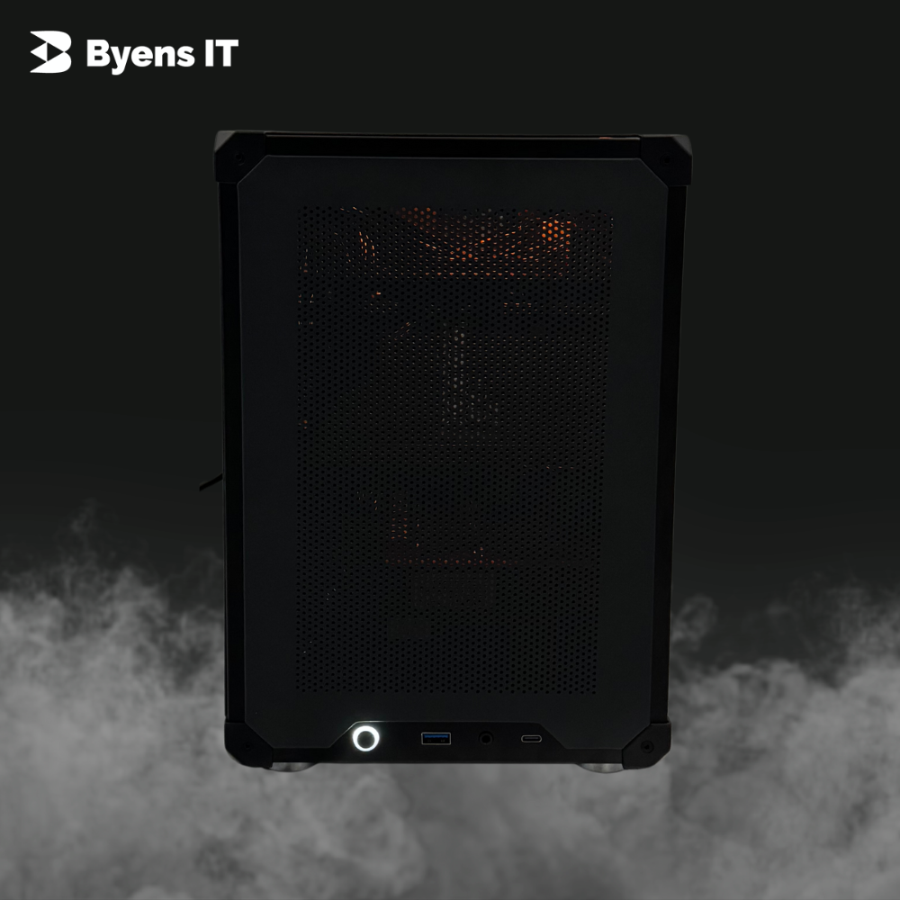 Kabinettet skiller sig ud: det har tydelige ITX-vibes med sit kompakte, mesh-baserede design, selvom det faktisk understøtter både ATX-bundkort og ATX-strømforsyninger. Resultatet er en kraftig, moderne gamer PC i et overraskende lille og stilrent chassis. Indeni leverer Ryzen 7 7700, et RTX 5060 Ti 16GB-grafikkort, 32GB DDR5 RAM og en hurtig 1TB NVMe SSD høj FPS i både CS2, Warzone, Fortnite og alle andre E-sportstitler.
