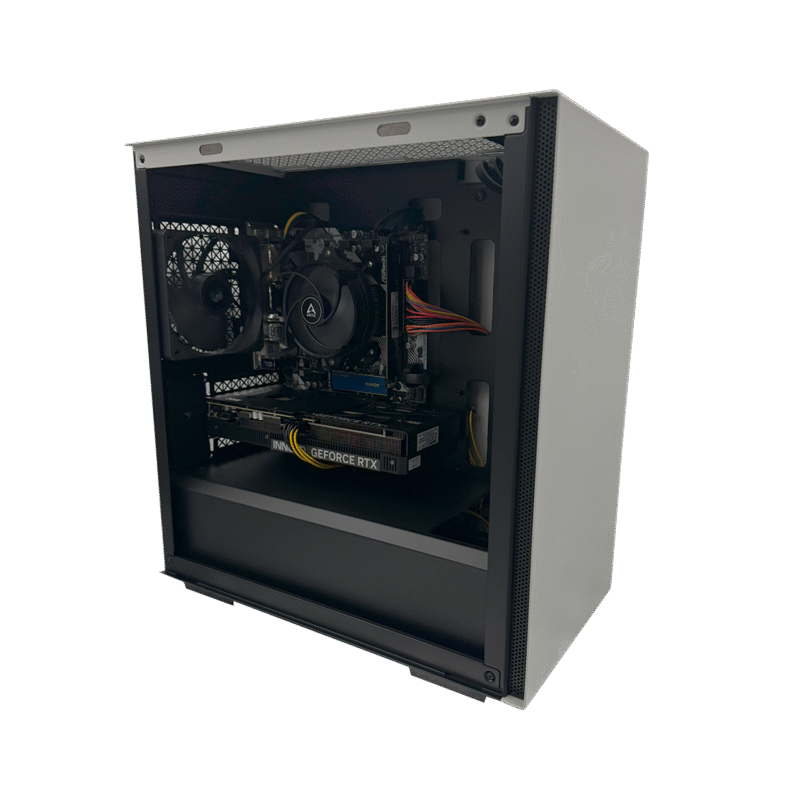 Ryzen 5 8400F leverer stærk CPU-performance til gaming og multitasking, og kombineret med 32GB DDR5 RAM får du en fremtidssikret maskine med masser af råstyrke. Den hurtige 1TB NVMe SSD giver lynhurtige loadtider og masser af plads til spil og programmer.